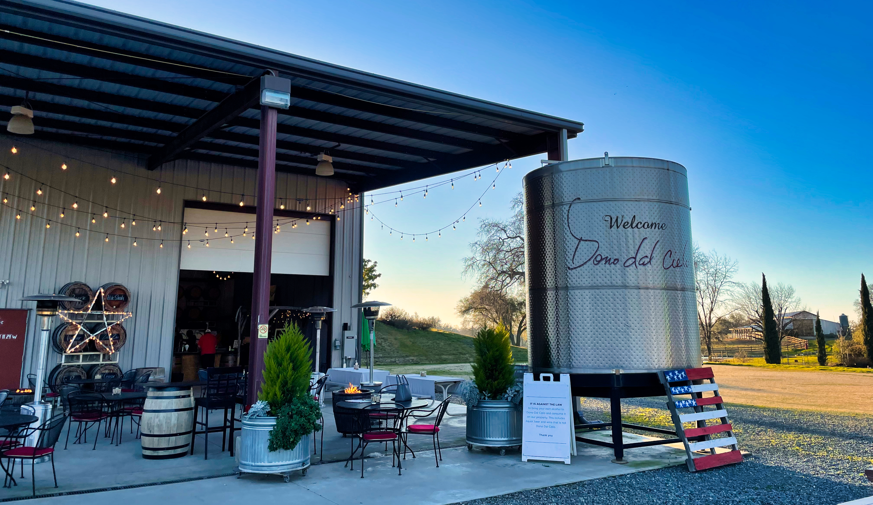 Dono Dal Cielo is an estate vineyard nestled in the warm rolling foothills of Newcastle. Taste award winning wines in a relaxed and very friendly atmosphere, either in the spacious barn or out on the patio overlooking the vineyards and farm. Saturdays often feature live music and food trucks, and occasionally local vendors will be invited to show their products.